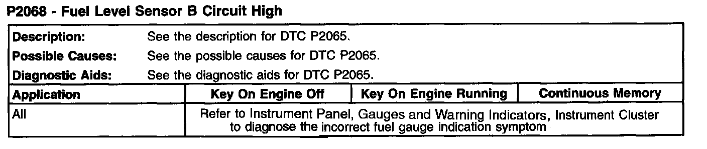 P2068 - Fuel Level Sensor B Circuit High: