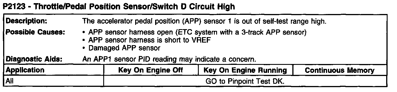 P2123 - Throttle/Pedal Position Sensor/Switch D Circuit High: