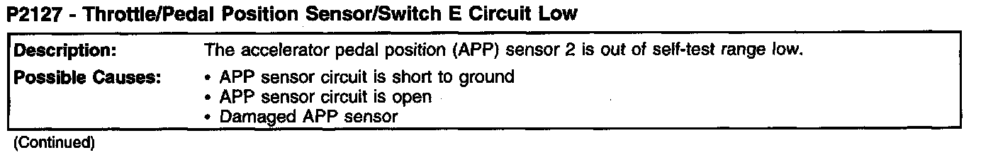 P2127 - Throttle/Pedal Position Sensor/Switch E Circuit Low (Part 2):