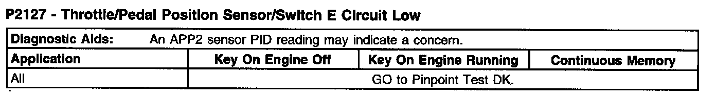 P2127 - Throttle/Pedal Position Sensor/Switch E Circuit Low (Part 1):