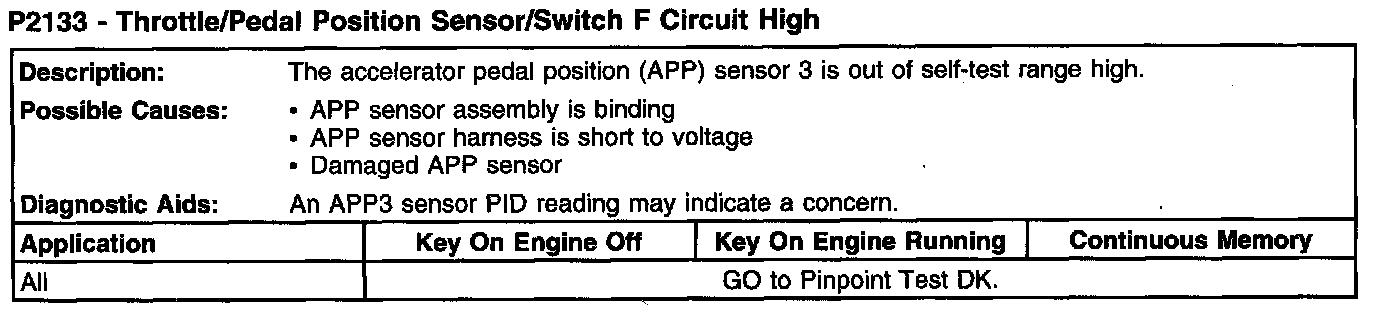 P2132 - Throttle/Pedal Position Sensor/Switch F Circuit High:
