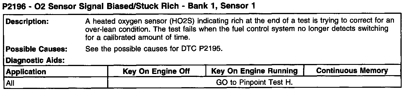 P2196 - O2 Sensor Signal Biased/Stuck Rich - Bank 1, Sensor 1: