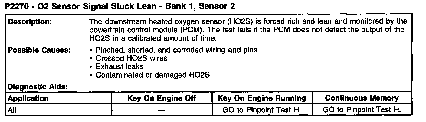 P2270 - O2 Sensor Signal Stuck Lean - Bank 1, Sensor 2: