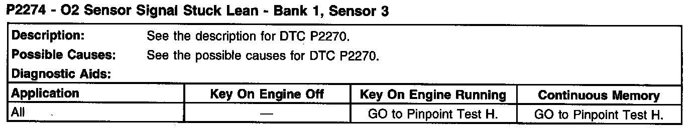 P2274 - O2 Sensor Signal Stuck Lean - Bank 1, Sensor 3: