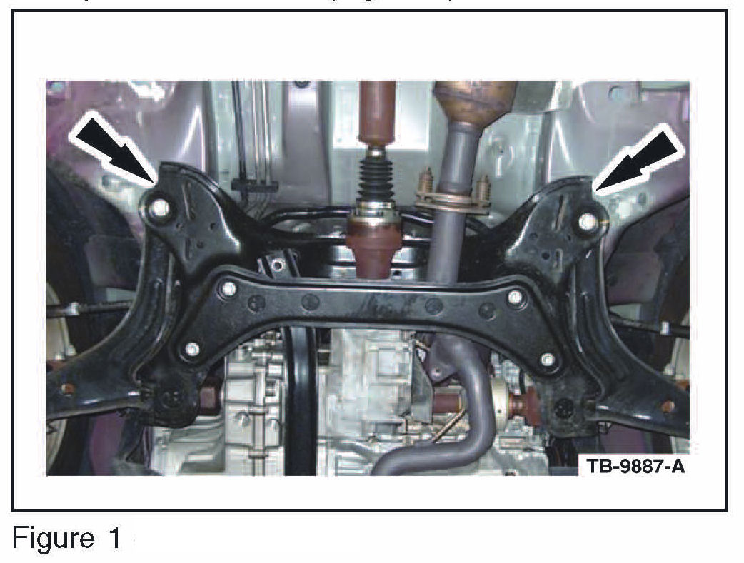(1) Loosen the two (2) front subframe nuts and the two (2) front subframe attachment bolts.