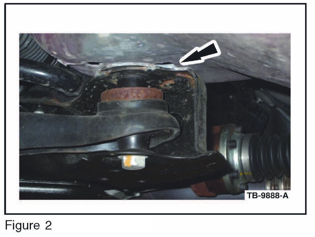 (2) Reposition the subframe to center the locating pins so there is no longer contact with any edge of the locating hole. (Figure 2)