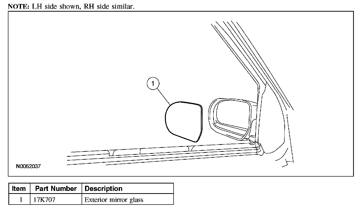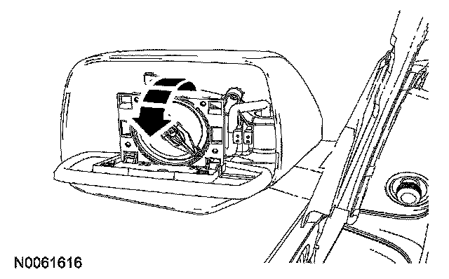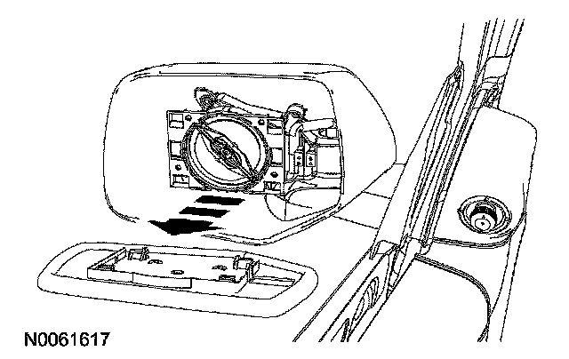 4. WARNING: Place a shop towel between the hands and the exterior mirror glass for protection in case of glass breakage during mirror service. Failure to follow this instruction may result in serious personal injury.