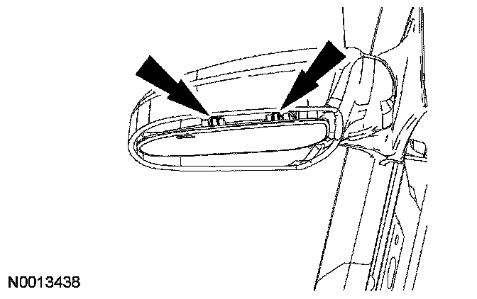 2. WARNING: Place a shop towel between the hands and the exterior mirror glass for protection in case of glass breakage during mirror service. Failure to follow this instruction may result in serious personal injury.