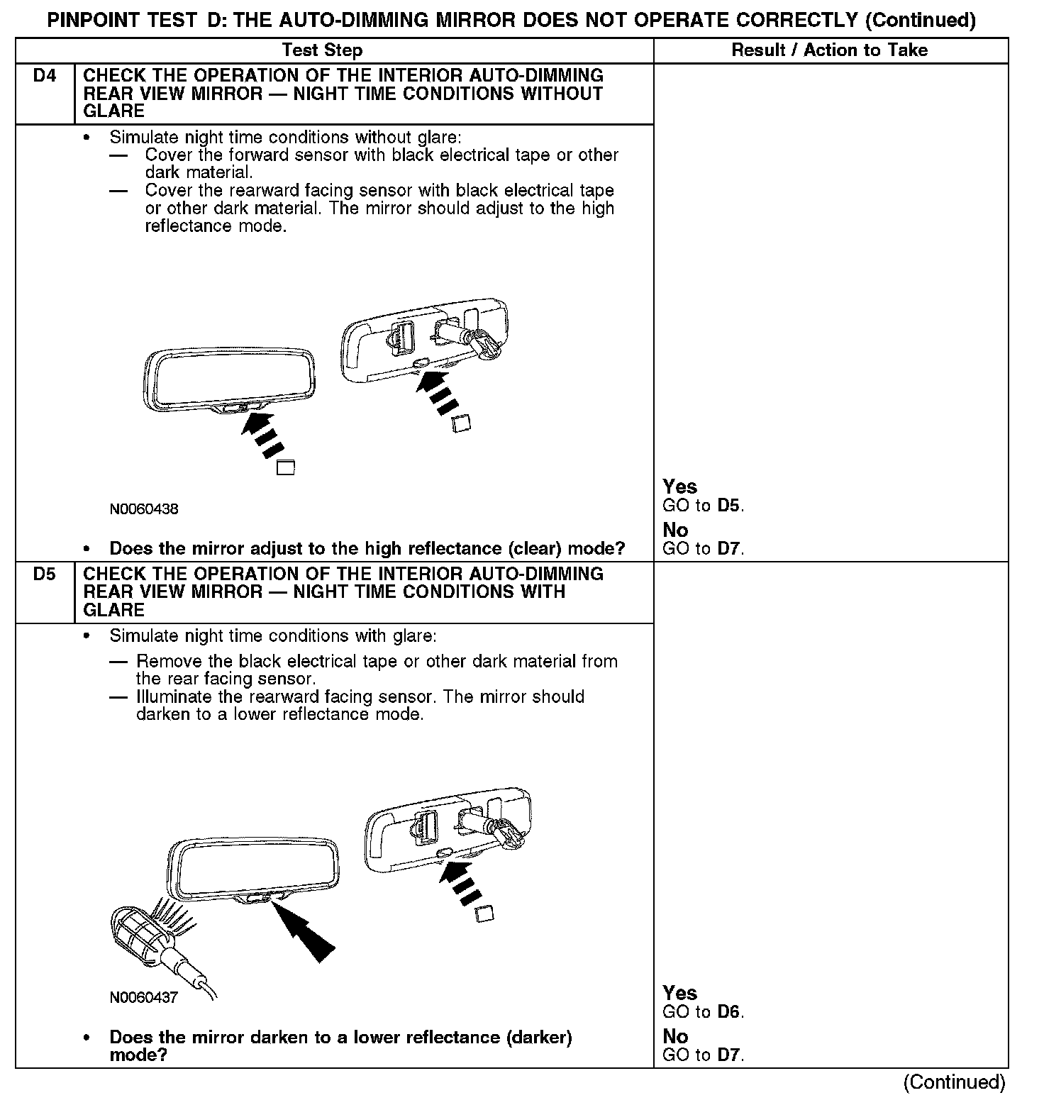 PINPOINT TEST D: THE AUTO-DIMMING MIRROR DOES NOT OPERATE CORRECTLYNormal Operation