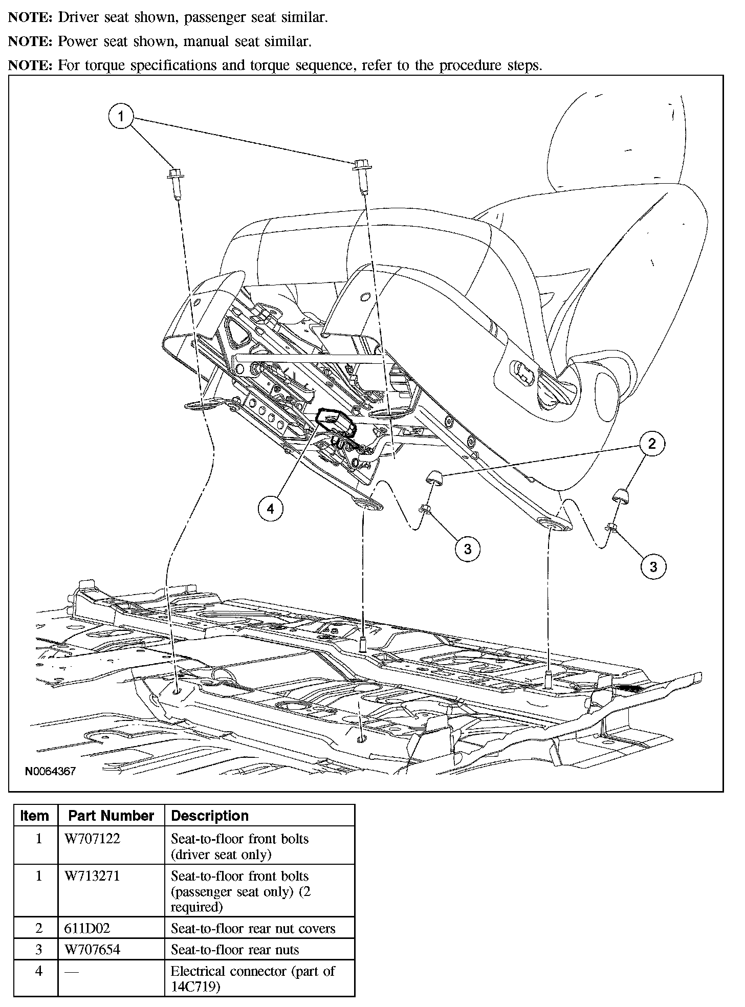 - The seat-to-floor fasteners must be tightened in the sequence described in this procedure.