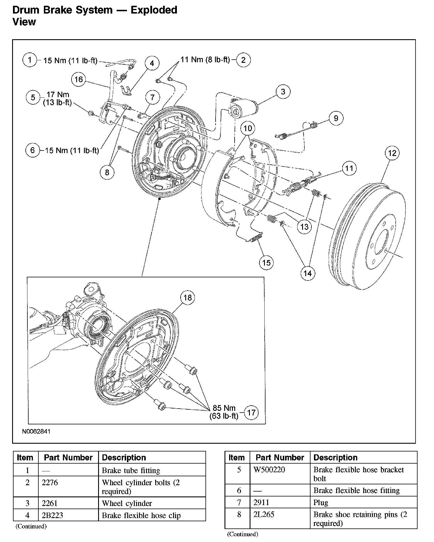 Drum Brake System - Exploded View (Part 2):