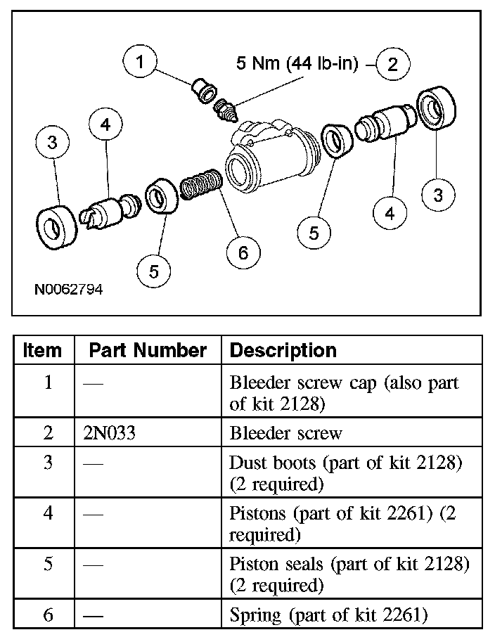 8. NOTE: Inspect the wheel cylinder bore for excessive wear, corrosion or pitting. If any of these conditions exist, a new wheel cylinder must be installed.