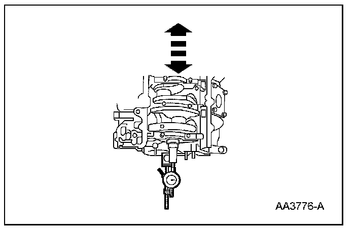 4. Move the crankshaft to the front of the cylinder block. Note and record the crankshaft end play.