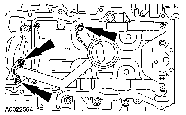 51. Remove the bolts, nut and the oil pump screen and pickup tube.