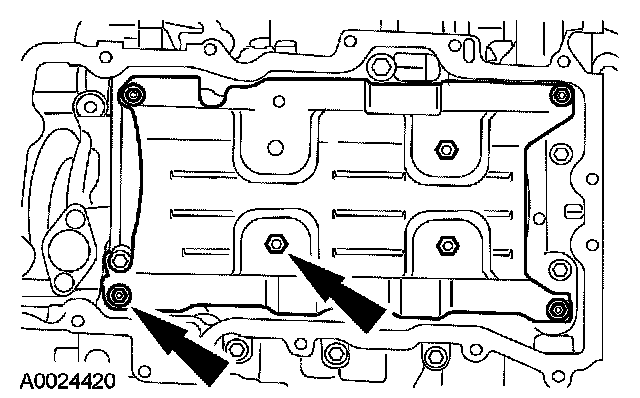 53. Remove the nuts and the oil pan baffle.