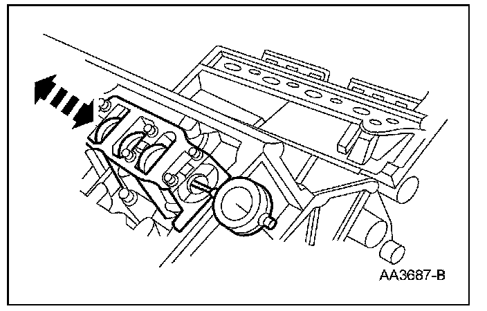 4. Move the camshaft to the front of the cylinder head. Note and record the camshaft end play.