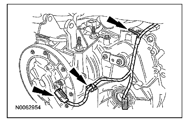 54. Disconnect the output shaft speed (OSS) sensor electrical connector and remove the bolt and the OSS sensor.