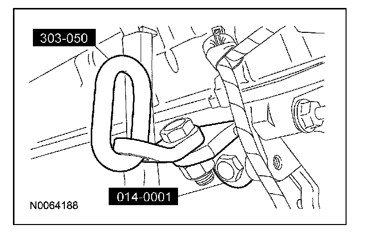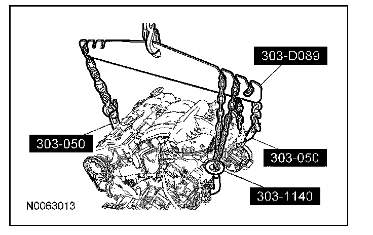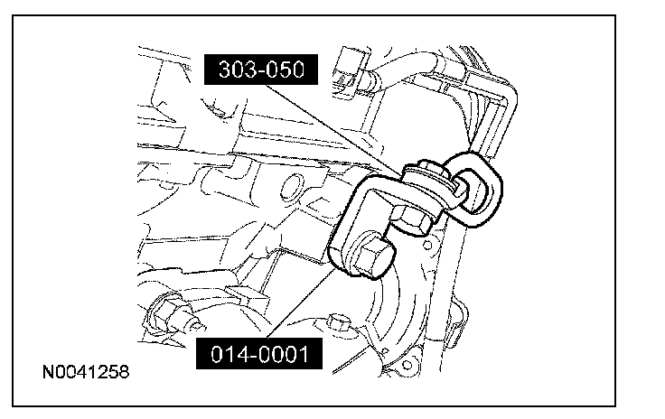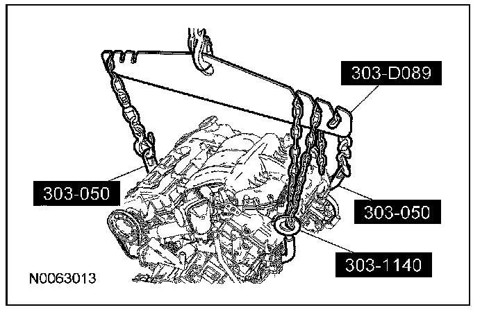 NOTE: The next 5 steps must be carried out with the vehicle raised and the powertrain lift in position.