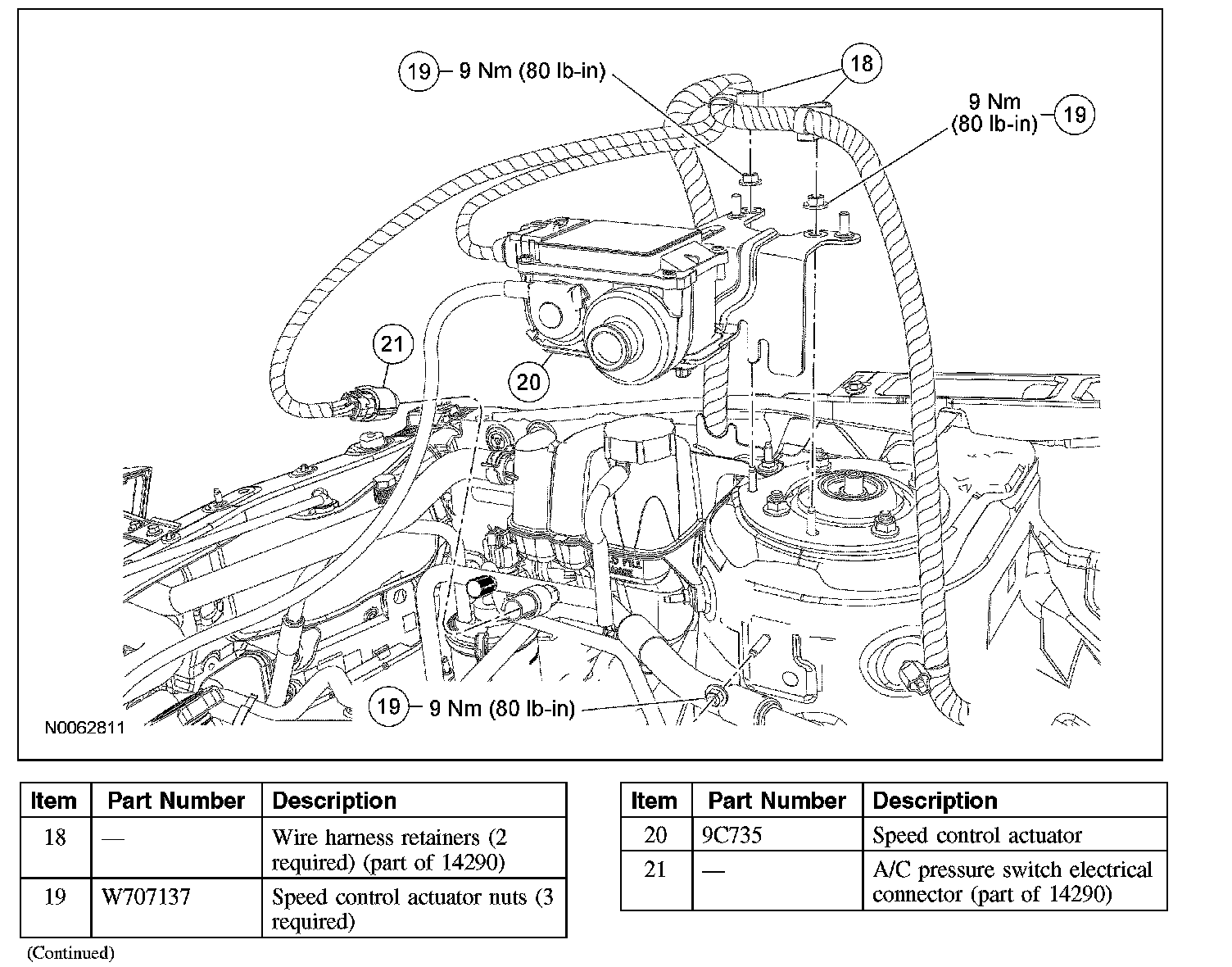 7. Attach the 2 wire harness retainers to the speed control actuator mounting studs.