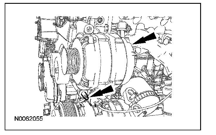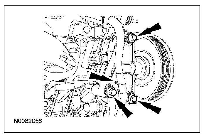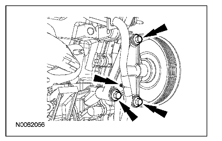10. Remove the 3 RH accessory drive belt idler pulley and bracket bolts.