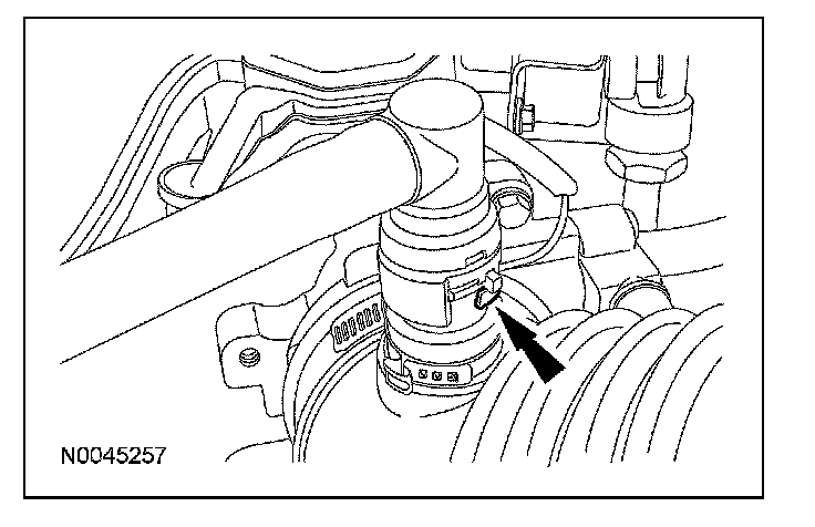 1. Connect the coolant pump-to-thermostat housing hose and reposition the clamp.