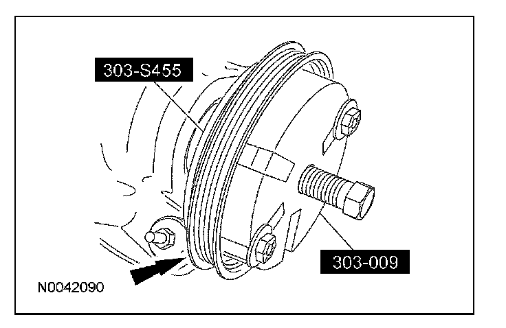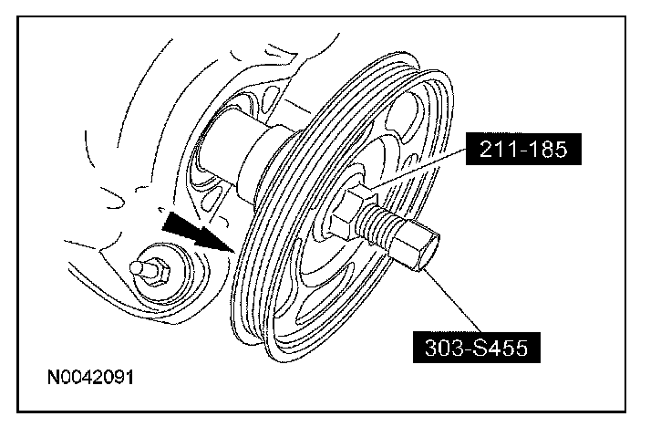 5. Using the special tool, remove the coolant pump drive pulley.