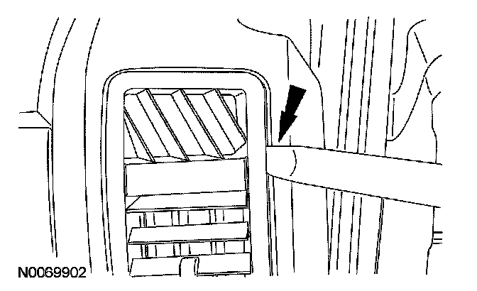 Using a suitable tool, gently pry to disengage the register clips from the instrument panel while working around the perimeter of the register.