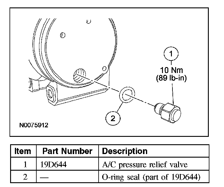 3. Remove the A/C pressure relief valve and O-ring seal.