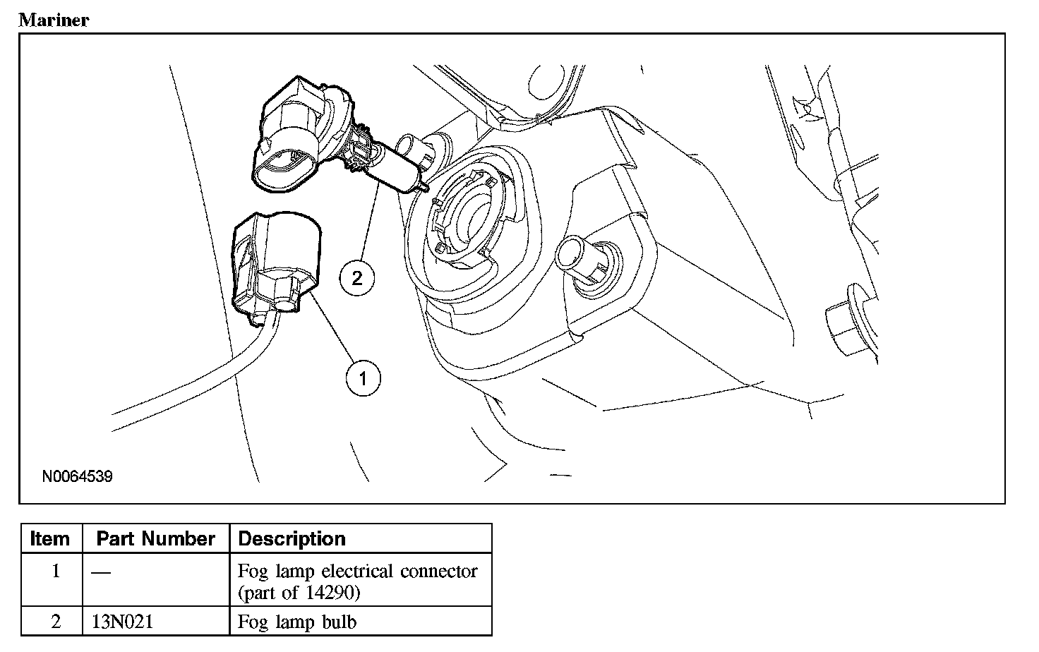 CAUTION: The fog lamp bulb should not be removed from the fog lamp until just before a new bulb is installed. Removing the bulb for an extended period of time may affect fog lamp bulb performance. Contaminants may enter the fog lamp where they can settle on the lens and reflector. Never turn on the fog lamps with the bulb removed.