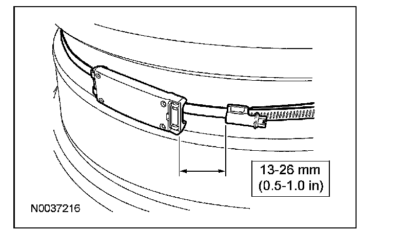 3. NOTE: The sensor and cradle must be positioned with the hinge side of the sensor on the RH side when viewed from the curb side (beauty side) of the wheel.