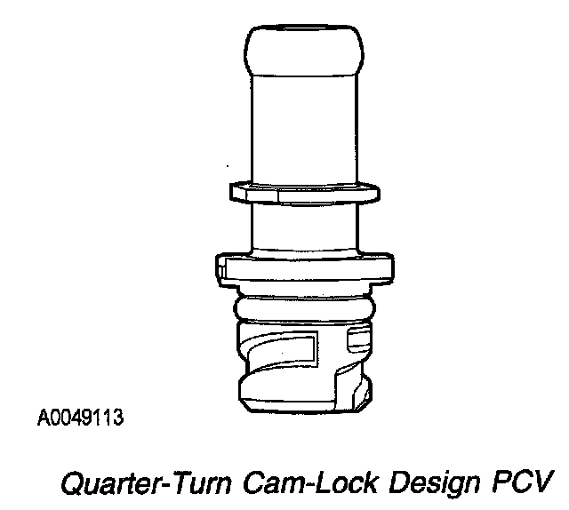 PCV systems that comply with OBD PCV monitoring requirements use a quarter-turn cam-lock thread design at one end to prevent accidental disconnection from the valve cover. For more information about the PCV monitor refer to Positive Crankcase Ventilation (PCV) System Monitor. Positive Crankcase Ventilation (PCV) System Monitor