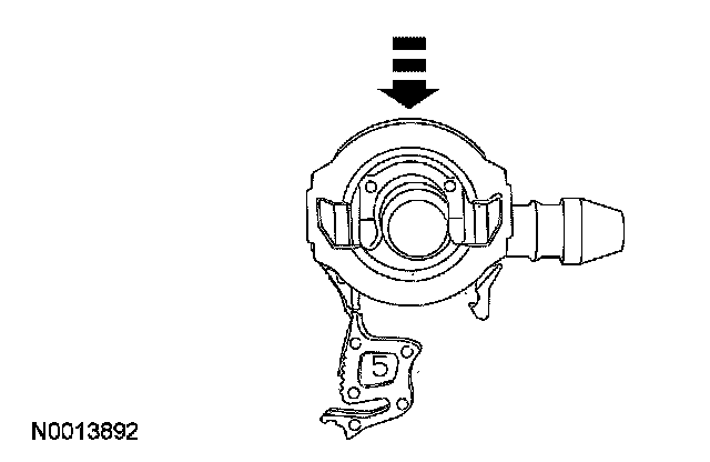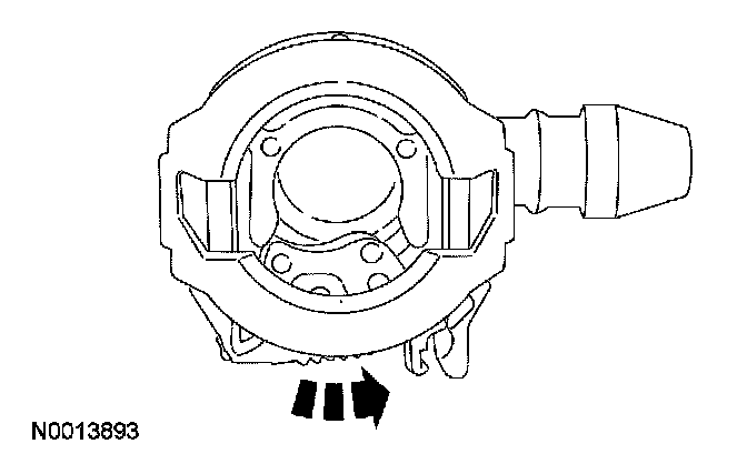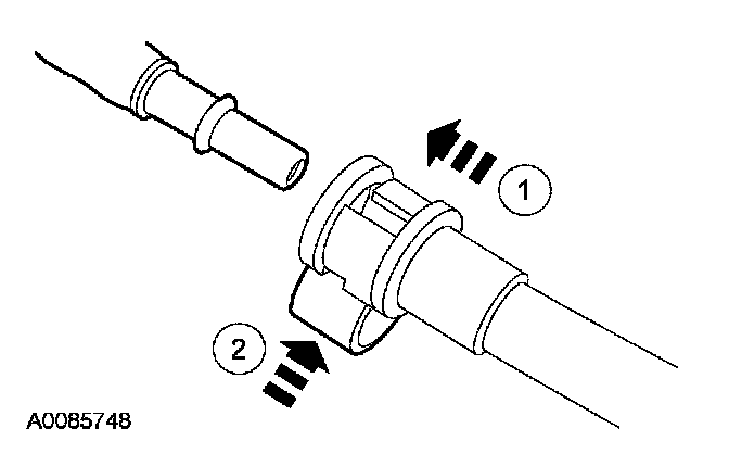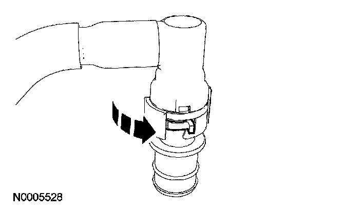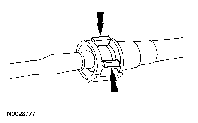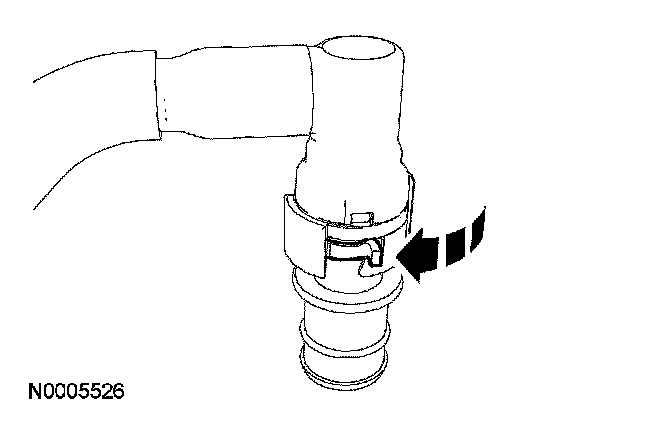 Depress the retainer clip until it is flush with the quick connect coupling housing.
