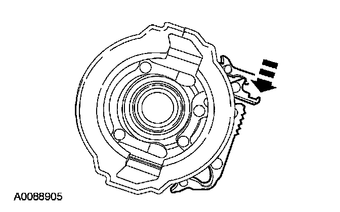 3. Rotate the primary lock tab to the fully un-locked position and squeeze the secondary lock tabs to release the locking mechanism.