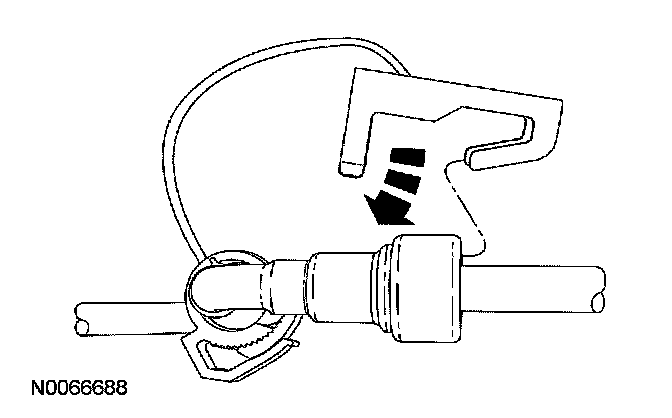 3. Insert the special tool onto the fuel tube and into the spring lock coupling.