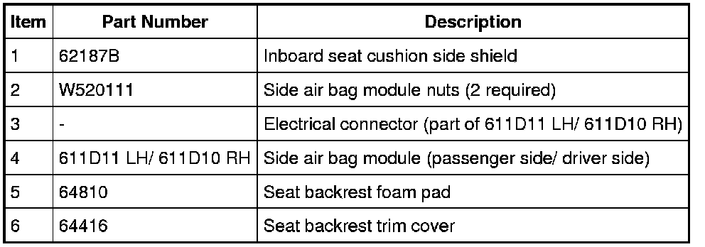 NOTE: If a side air bag deployment took place, a new seat back pad, trim cover, side air bag module and nuts must be installed. The seat back frame should be replaced if necessary.