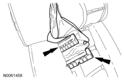 3. NOTICE: Note the position of the wiring harness, to aid installation. An incorrectly routed wiring harness could become damaged when the seat is moved.