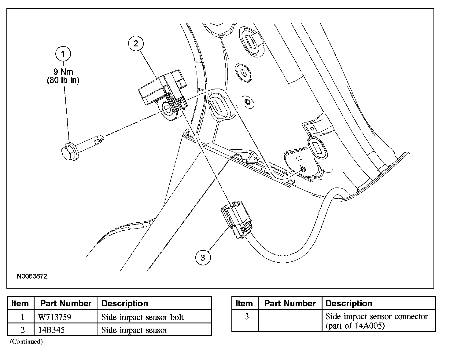 - Make sure the C-pillar and side impact sensor mating surfaces are clean and free of foreign material.