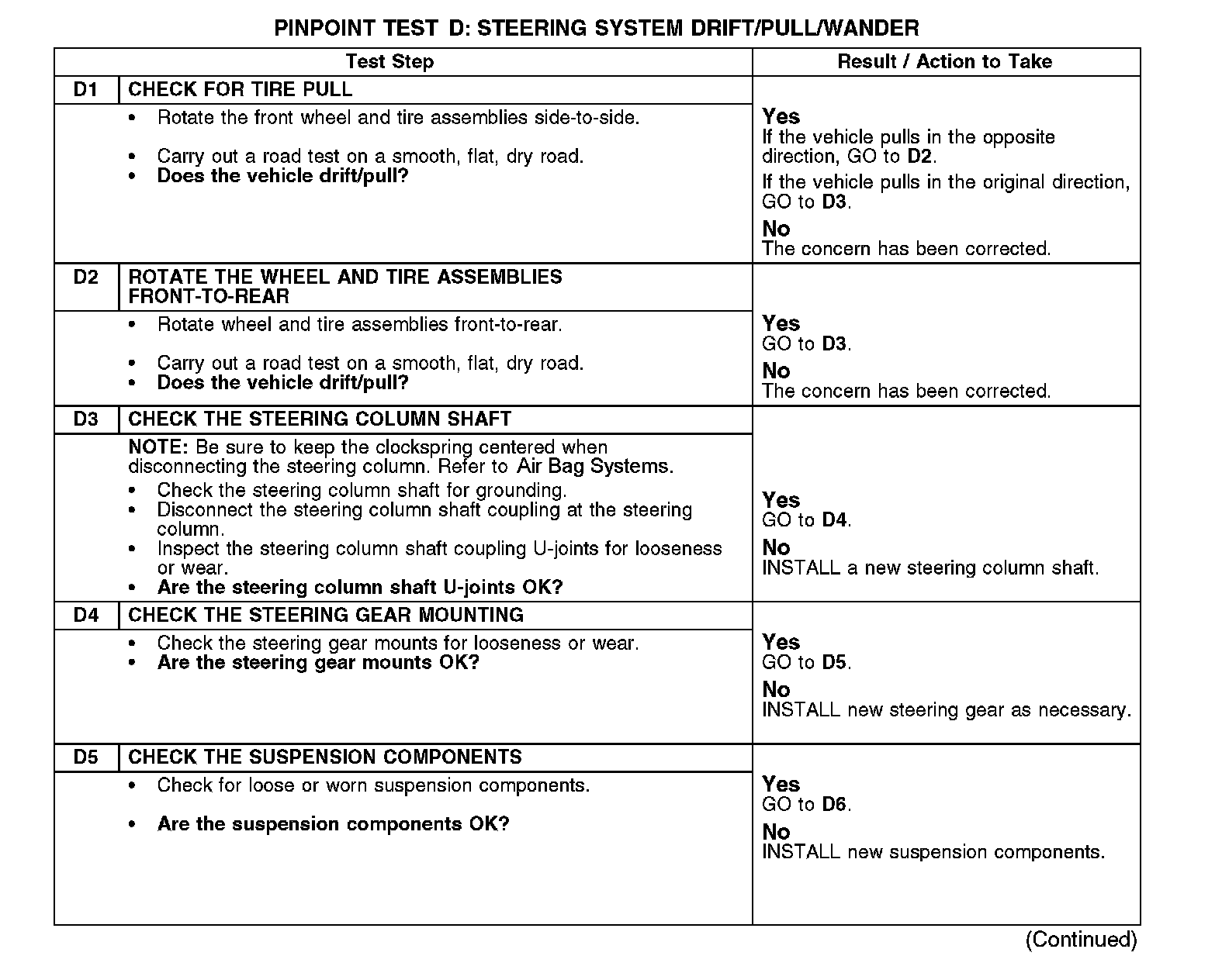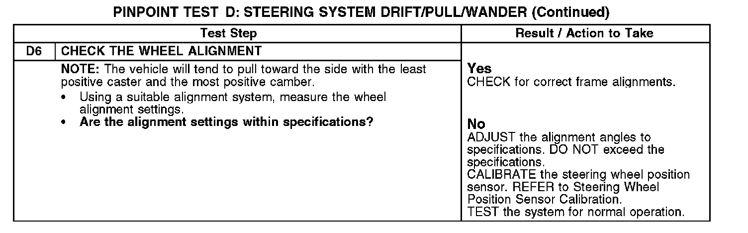 Test D: Steering System Drift/Pull/Wander