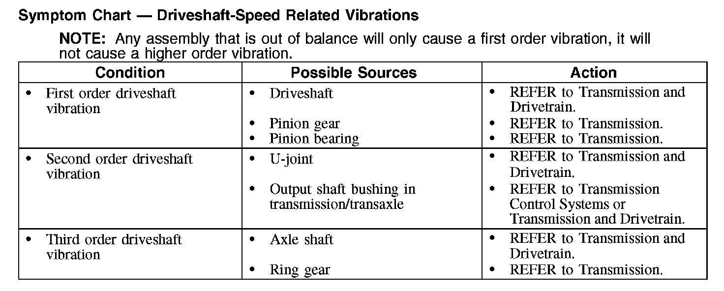 Symptom Chart - Driveshaft-Speed Related Vibrations