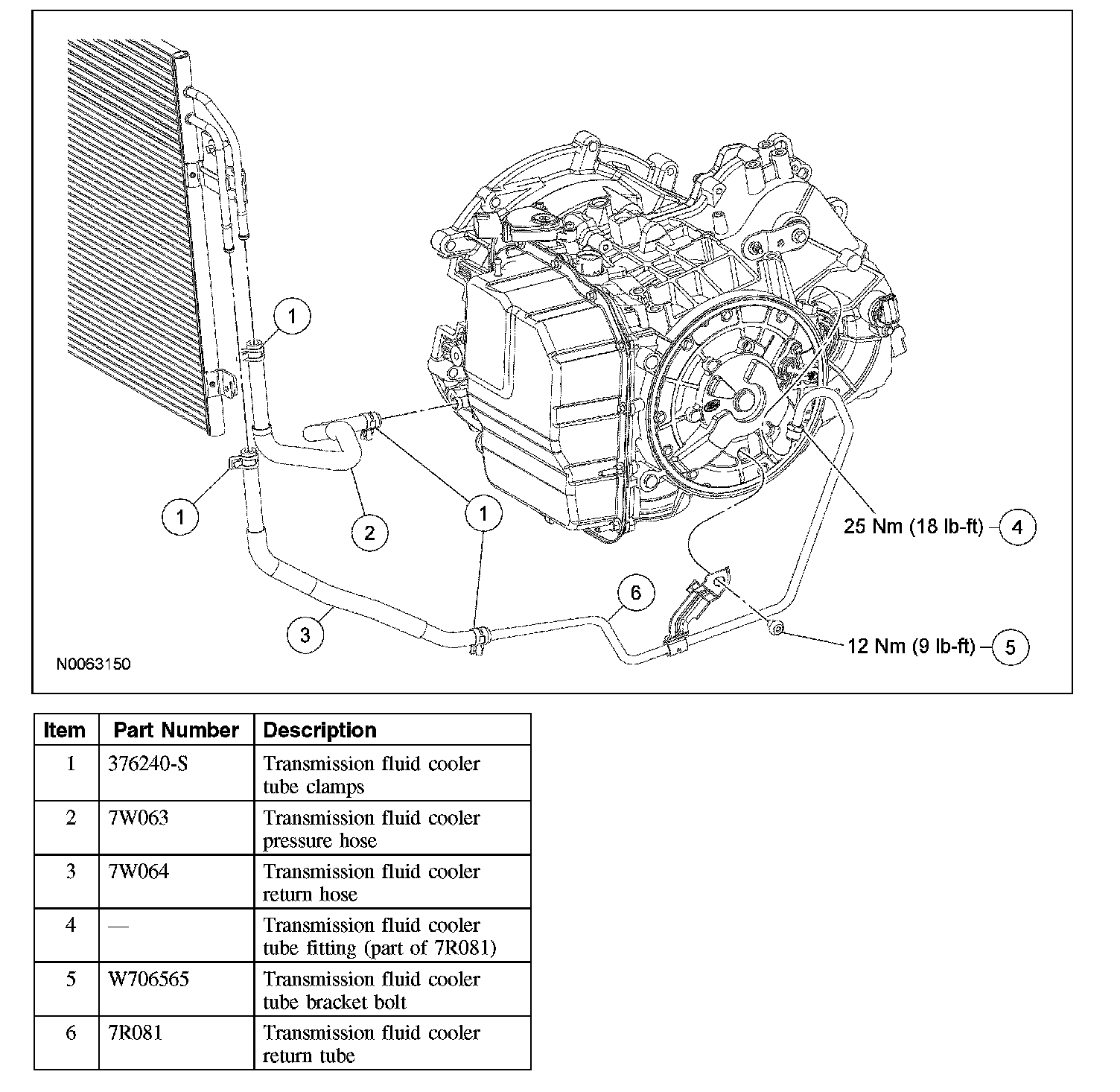 8. Remove the fluid cooler tubes from under the vehicle and install new as necessary.