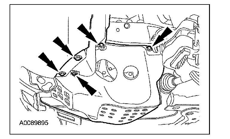 4. Remove the retainer, the 5 bolts and the LH splash shield.