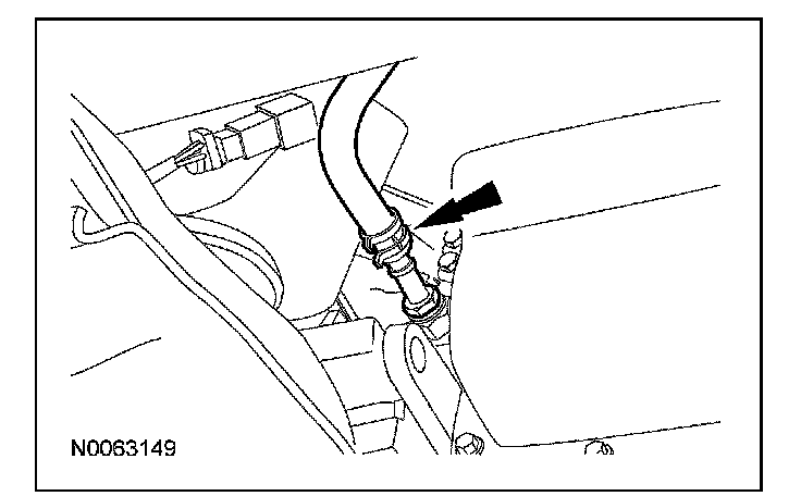5. Disconnect the front transmission fluid cooler hose from the transaxle case.