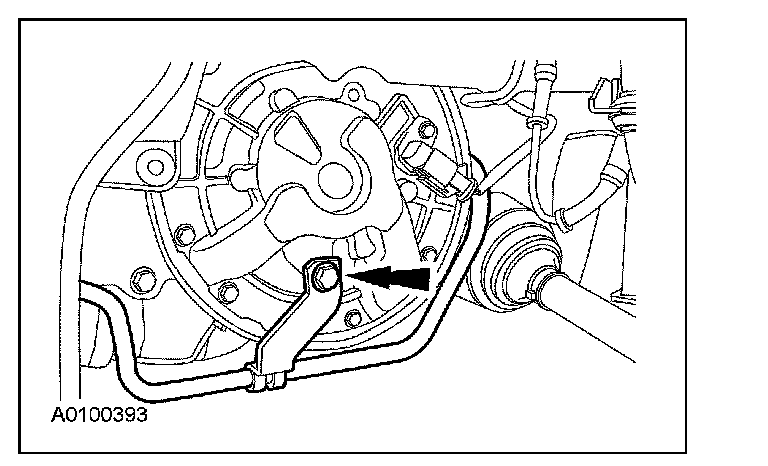7. Disconnect and remove the fluid cooler tube bracket and bolt from the transaxle case.