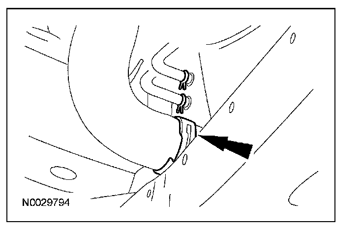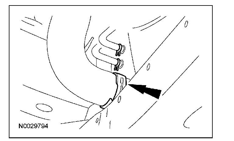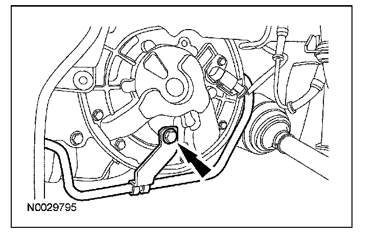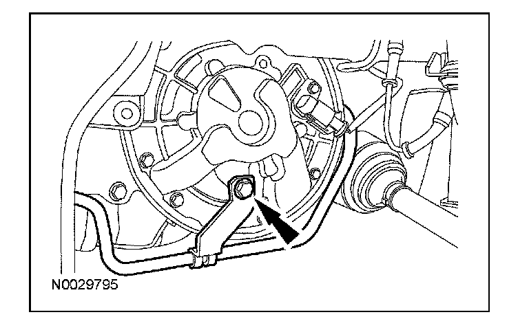 9. Remove the transmission fluid cooler tube bracket bolt.