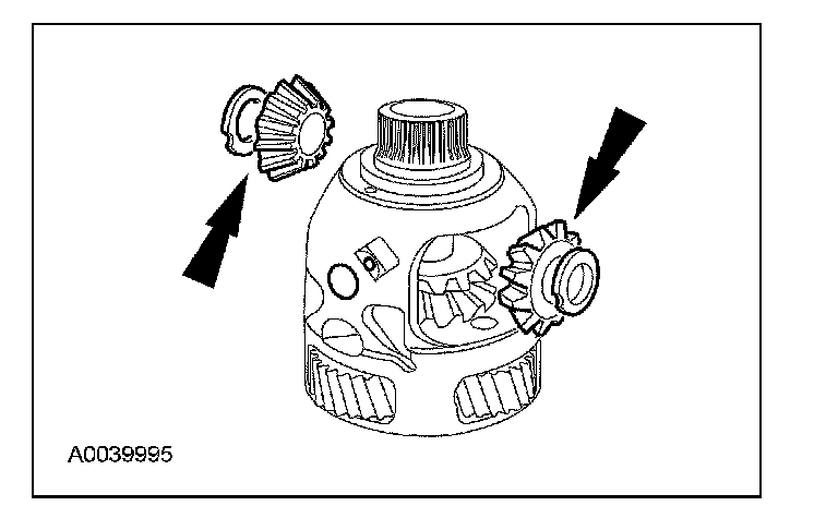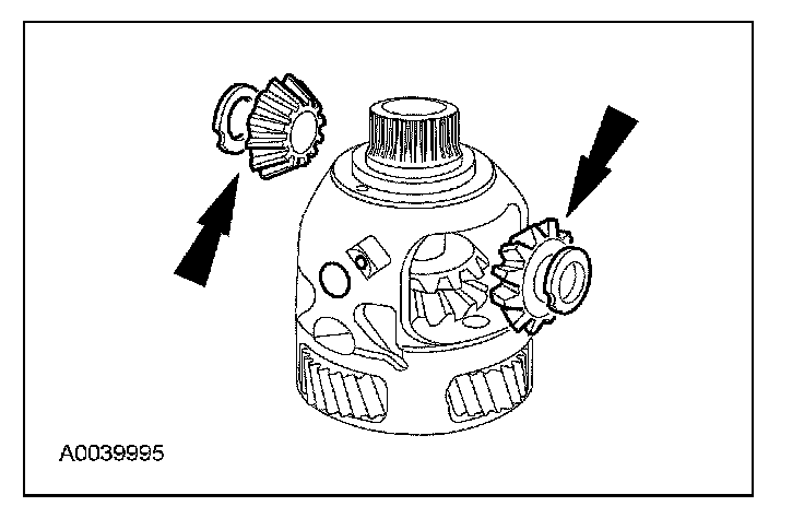 1. Install the differential side gears and thrust washers.