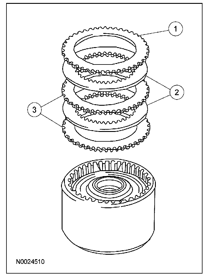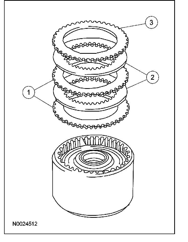 NOTE: Do not clean the clutch plates in a vapor degreaser or with any other type of detergent solution. Clean all parts thoroughly in a clean automatic transmission fluid and blow dry with moisture-free regulated compressed air.