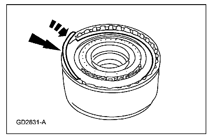 6. Install the reverse clutch pressure plate retainer snap ring (selective fit).