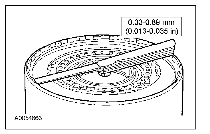 7. Measure the clearance between the reverse clutch pressure plate and the reverse clutch pressure plate retainer snap ring with a feeler gauge.