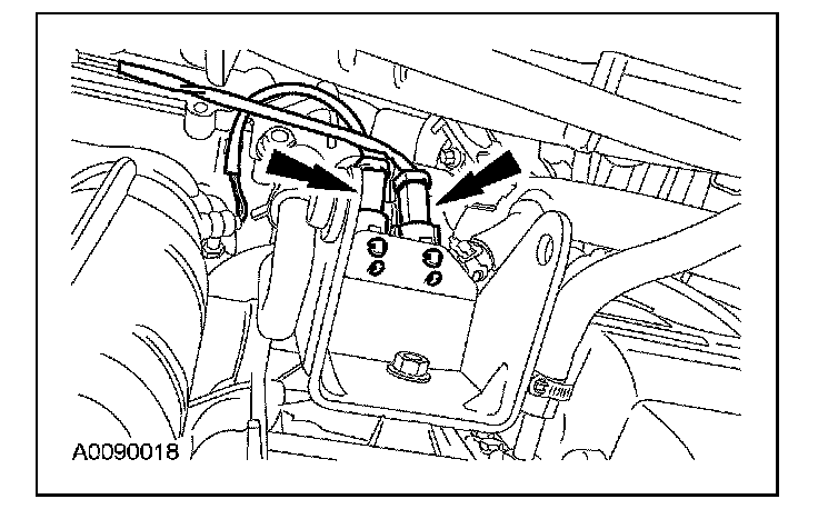 36. Install the LH brake hose retainer and the ABS sensor bolt.