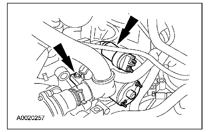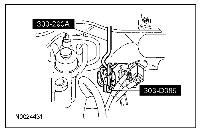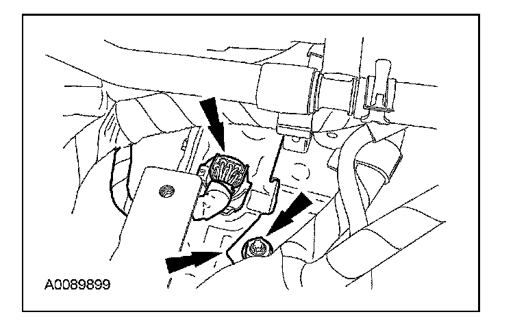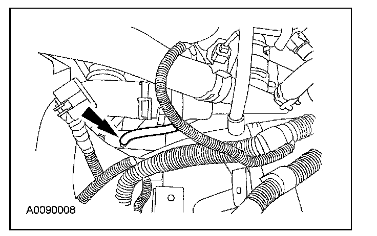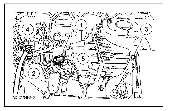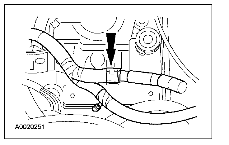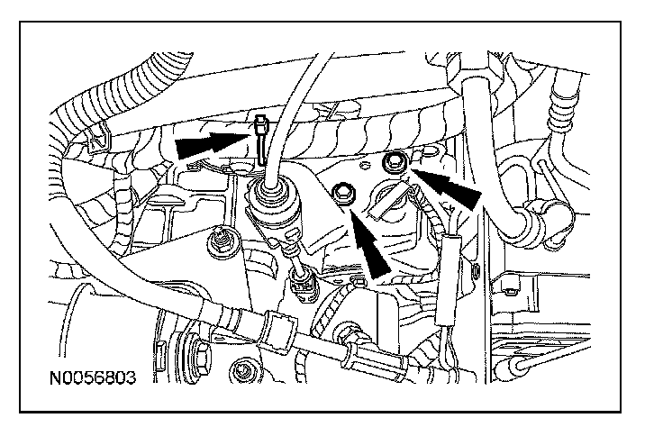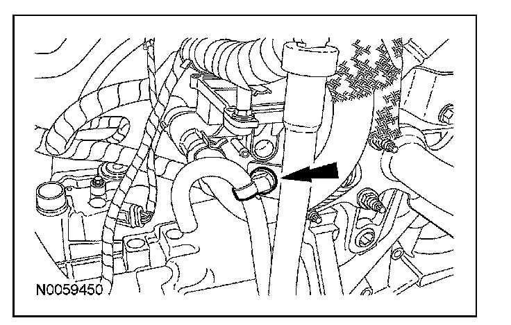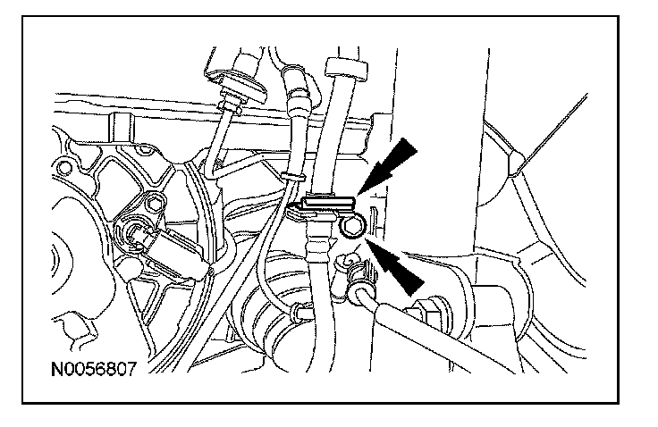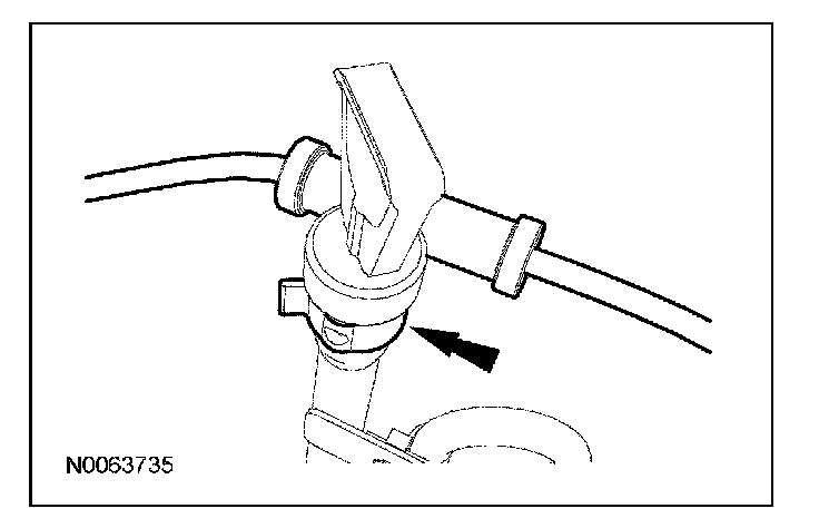 59. Connect the evaporative emissions (EVAP) and PTU vent hose to the transmission filler tube bracket.